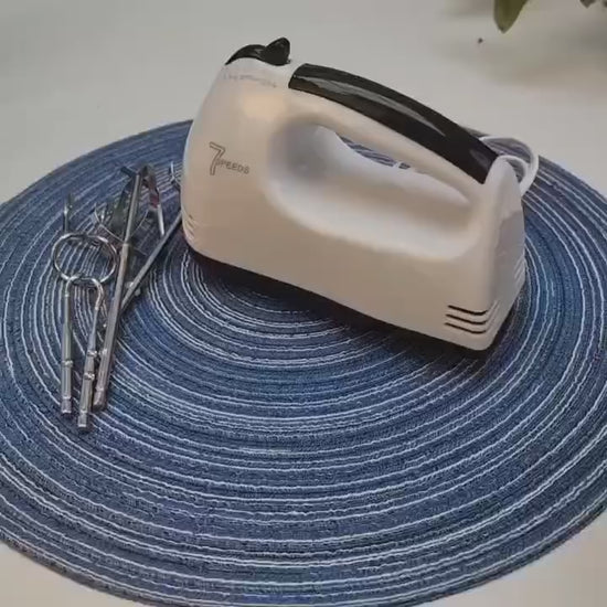 The product is a 7 speed level hand mixer, it is a great helper in kitchen! Making a Cake? Use hand mixer! Making a dessert? Use hand mixer! Homemade mask? Use hand mixer! Feature Small hand mixer, great functionality Very powerful Speed control